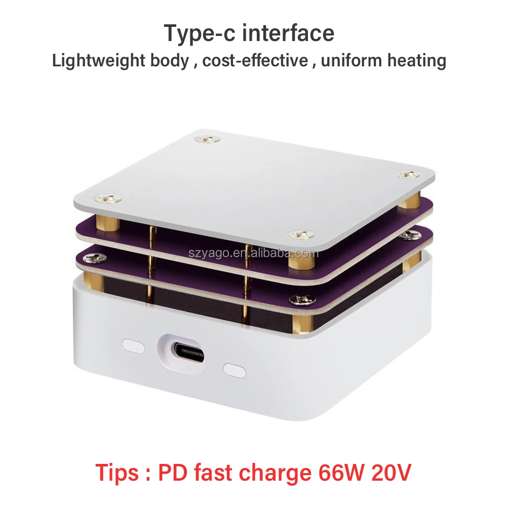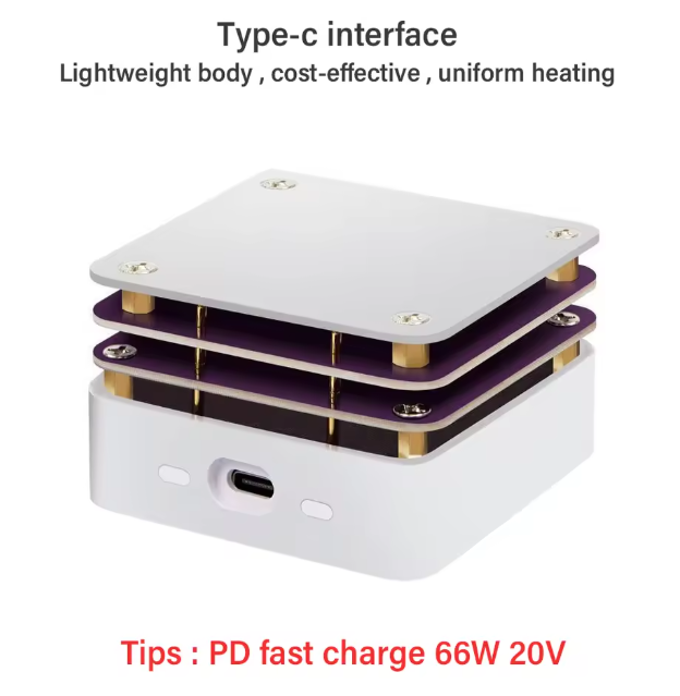 Bàn gia nhiệt được cấp nguồn qua cổng Type-C, tương thích với adapter PD65W (20V/3.25A), đảm bảo nguồn điện ổn định, an toàn và tiết kiệm năng lượng.