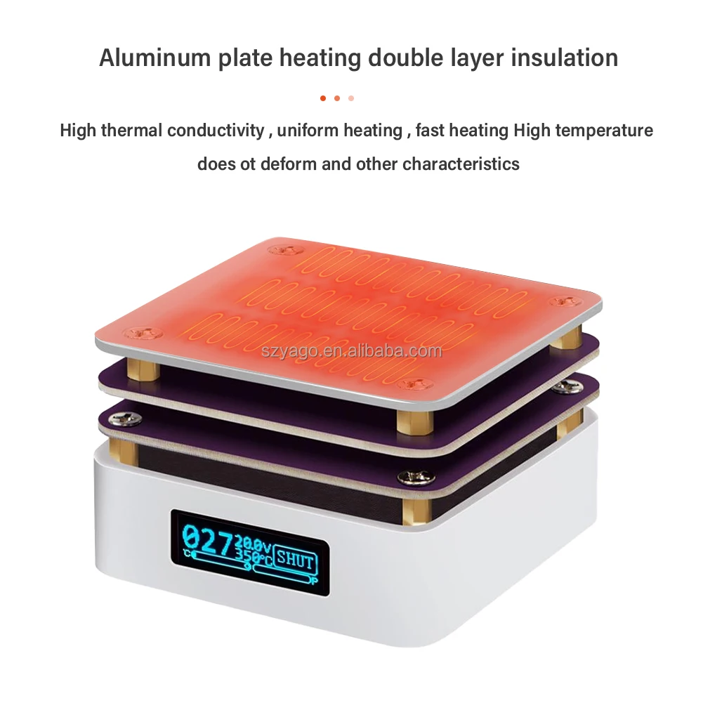 Model YIERYI G3061 là bàn gia nhiệt ổn định nhiệt độ hai lớp (Double Layer Constant Temperature Heating Table), sử dụng tấm nhôm tản nhiệt cao cấp và điều khiển nhiệt độ kỹ thuật số, giúp duy trì nhiệt độ chính xác, đồng đều và ổn định trong suốt quá trình làm việc.