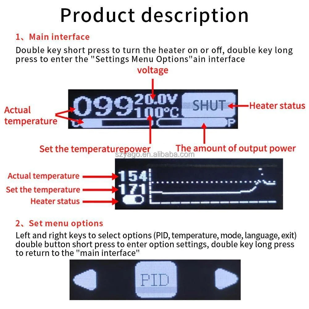 Gia nhiệt nhanh, đạt đến nhiệt độ làm việc chỉ trong vài giây.Dải nhiệt rộng 0–350°C: