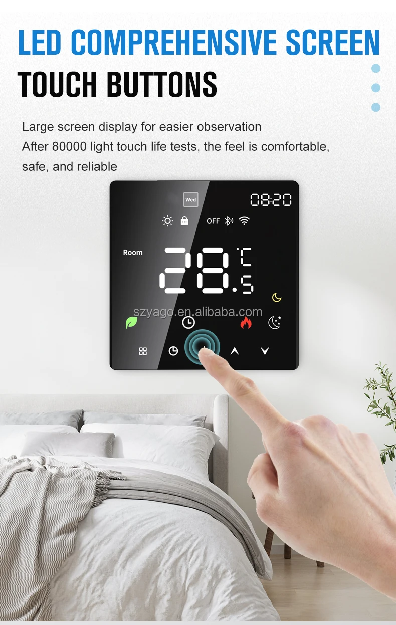 Với khả năng kết nối WiFi, màn hình cảm ứng sang trọng, và tương thích hệ sinh thái Tuya Smart / Smart Life, đây là lựa chọn hoàn hảo cho nhà thông minh, khách sạn, hoặc hệ thống HVAC cao cấp.