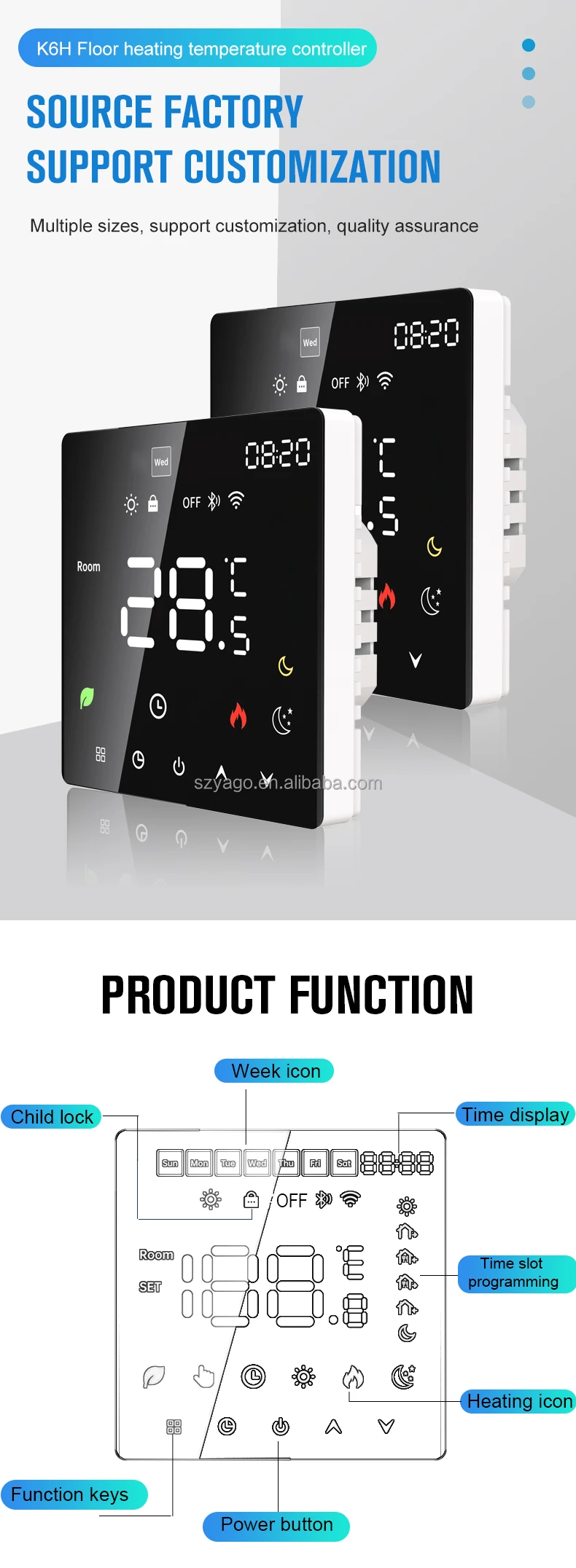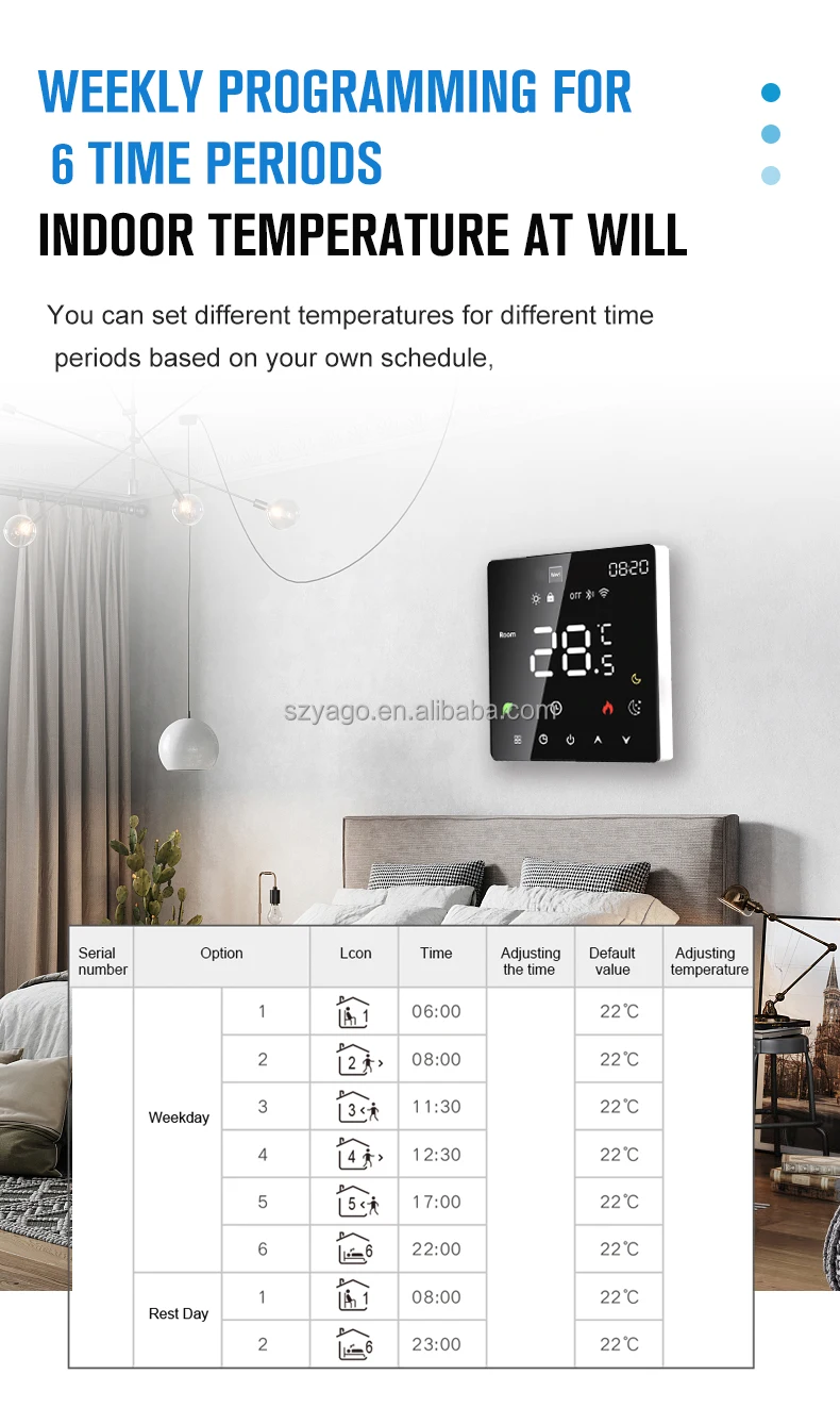 Tuya WiFi K6 Smart Thermostat là thiết bị điều khiển nhiệt độ thế hệ mới, kết hợp hoàn hảo giữa thiết kế tinh tế, độ chính xác cao, lập lịch thông minh và điều khiển giọng nói hiện đại.