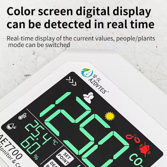 Tích hợp cảm biến hồng ngoại không phân tán (NDIR) để đo nồng độ CO₂ chính xác.