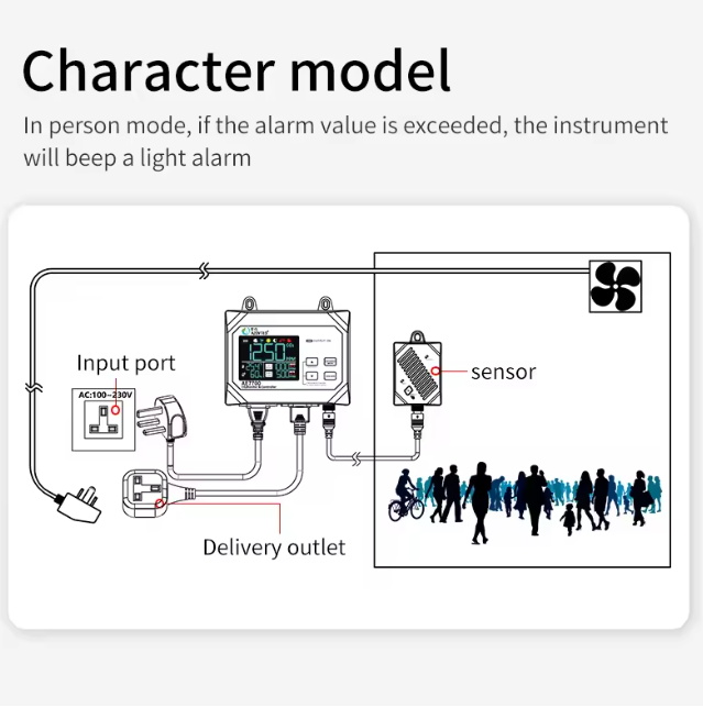 Khi nồng độ CO₂ vượt ngưỡng cài đặt, bộ điều khiển sẽ tự động kích hoạt quạt thông gió hoặc thiết bị hút khí để giảm nồng độ.