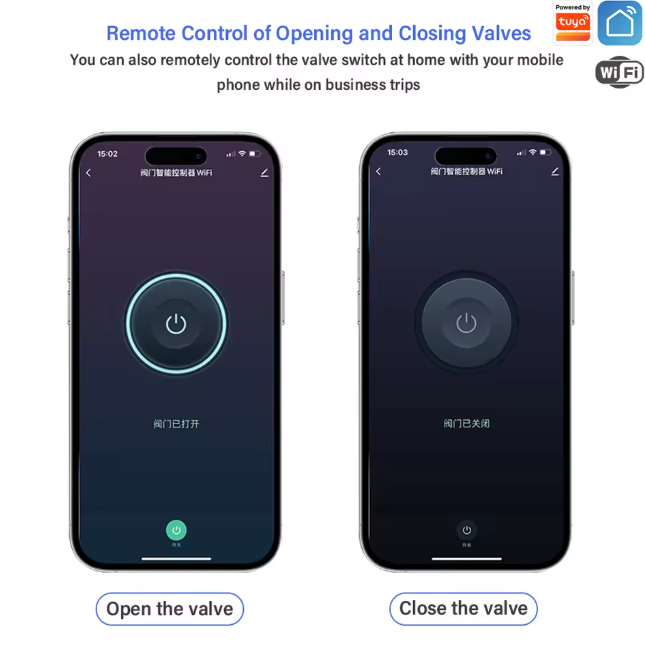 Sản phẩm kết nối trực tiếp với ứng dụng Tuya Smart / Smart Life, cho phép bạn đóng hoặc mở van chỉ bằng một chạm trên điện thoại.