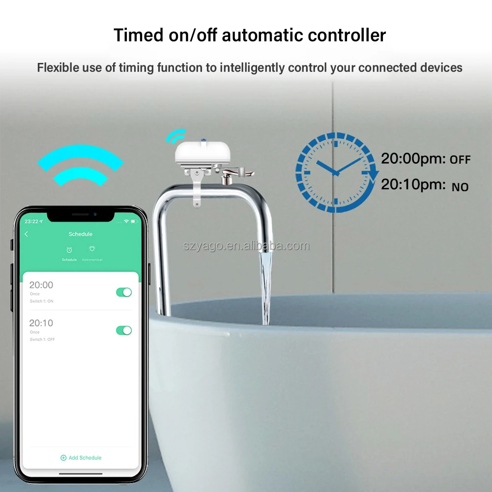 Với bộ điều khiển van nước & van gas thông minh Tuya THE01884, người dùng có thể đóng/mở van nước hoặc van gas tự động thông qua ứng dụng Tuya Smart / Smart Life, hoặc ra lệnh bằng giọng nói qua Alexa và Google Home.