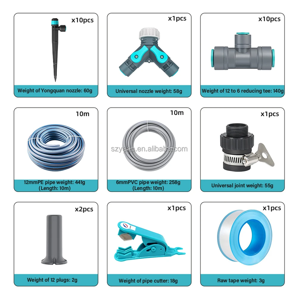 Bộ hệ thống tưới YIERYI 2501-Z001 thường bao gồm: