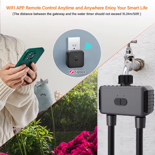 Sản phẩm được thiết kế chuyên dụng cho tưới vườn, sân cỏ, tiểu cảnh và hệ thống tưới nhỏ giọt, hỗ trợ kết nối ZigBee để điều khiển qua ứng dụng Tuya Smart App.