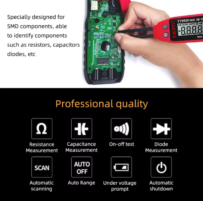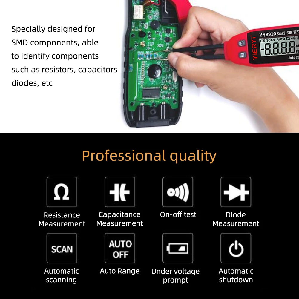 - Bút đo linh kiện SMD thông minh YY8910 – Thiết bị kiểm tra điện trở, tụ điện, diode chính xác cao