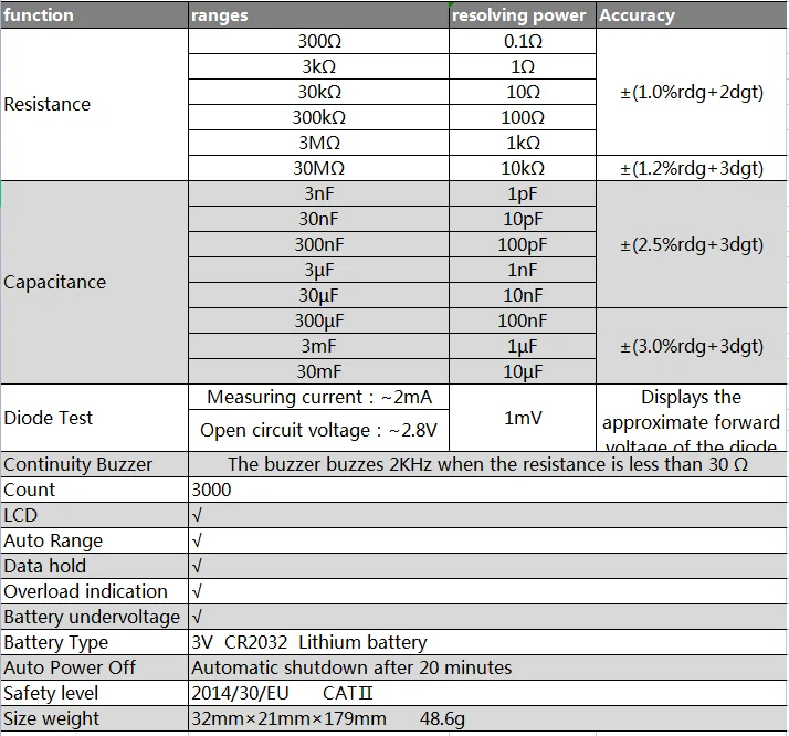 Chức năng: Đo điện trở, tụ điện, diode, linh kiện SMD