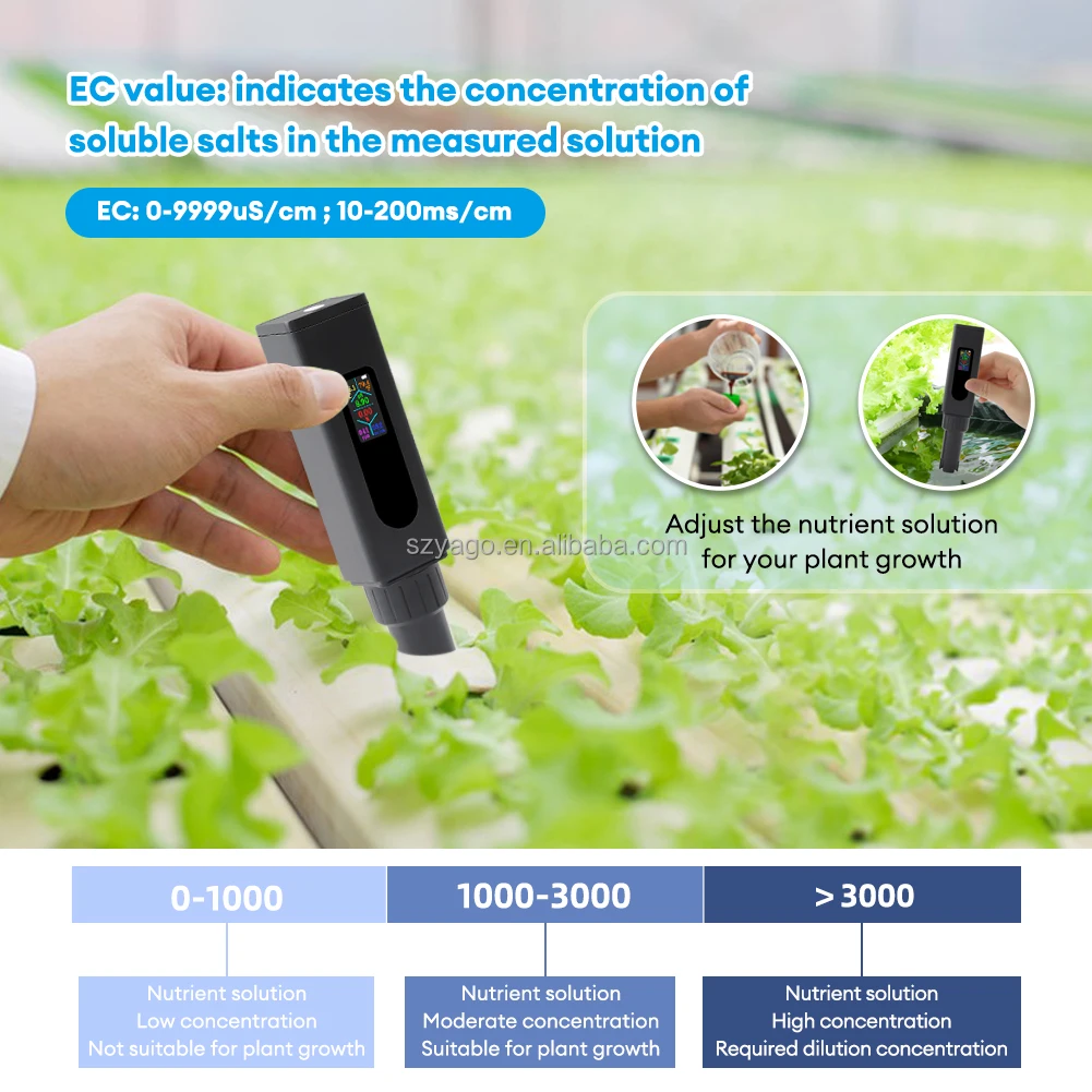 Thiết bị phù hợp cho nông nghiệp thủy canh, hồ cá cảnh, phòng thí nghiệm, nước uống, nước RO, hoặc bất kỳ môi trường nào cần kiểm tra chất lượng nước nhanh chóng và chính xác.