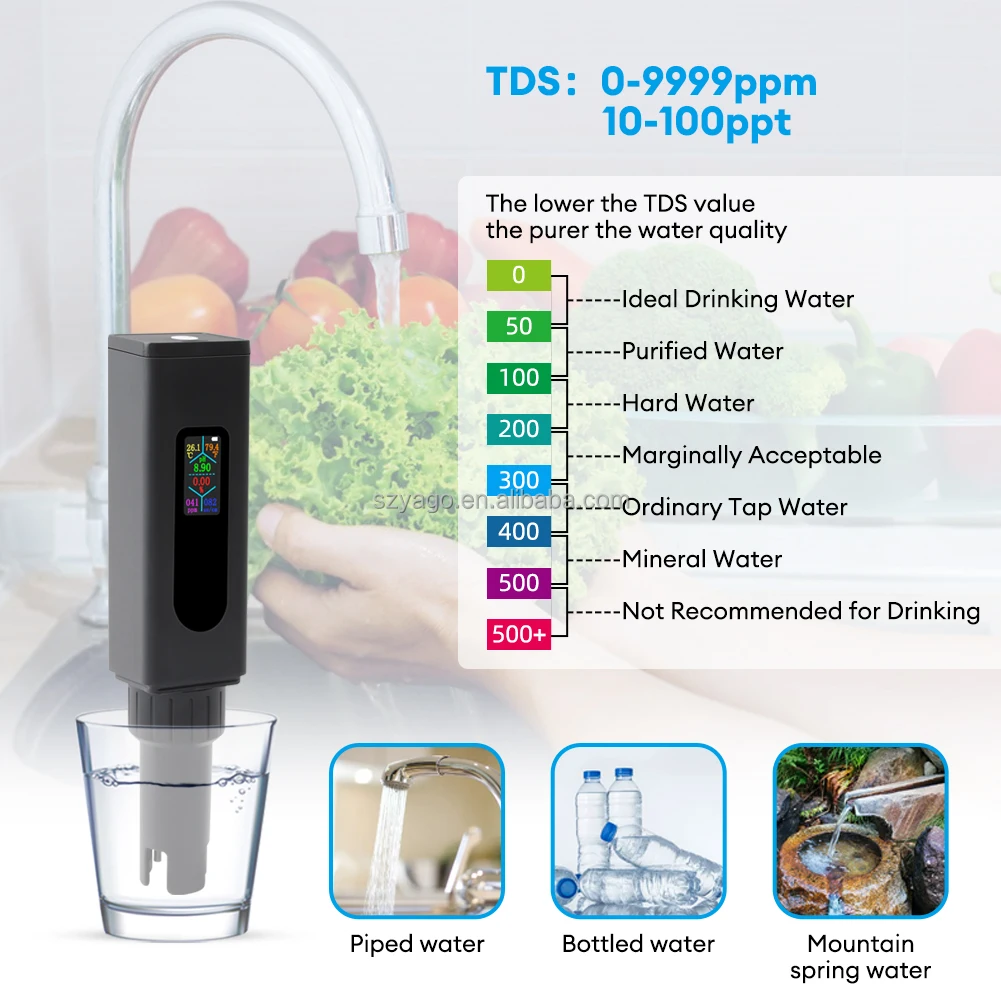 TDS: 0–9999 ppm / 10–100 ppt