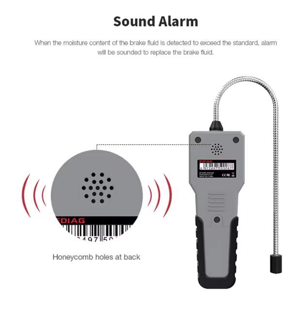 Xác định tỷ lệ nước trong dầu phanh với độ tin cậy cao, giúp người dùng quyết định có nên thay dầu hay chưa.Chất liệu vỏ ABS bền và nhẹ:
