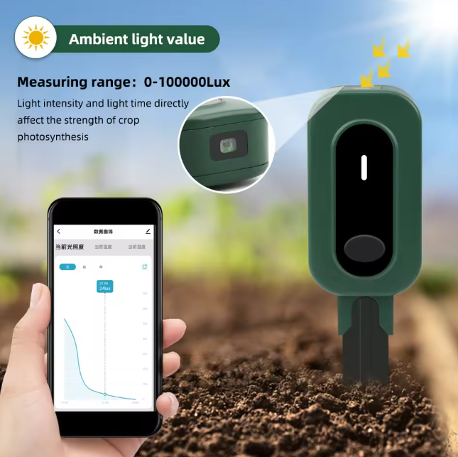 | Loại sản phẩm | Cảm biến đất thông minh 3 trong 1 (ánh sáng, nhiệt độ, độ ẩm) |
