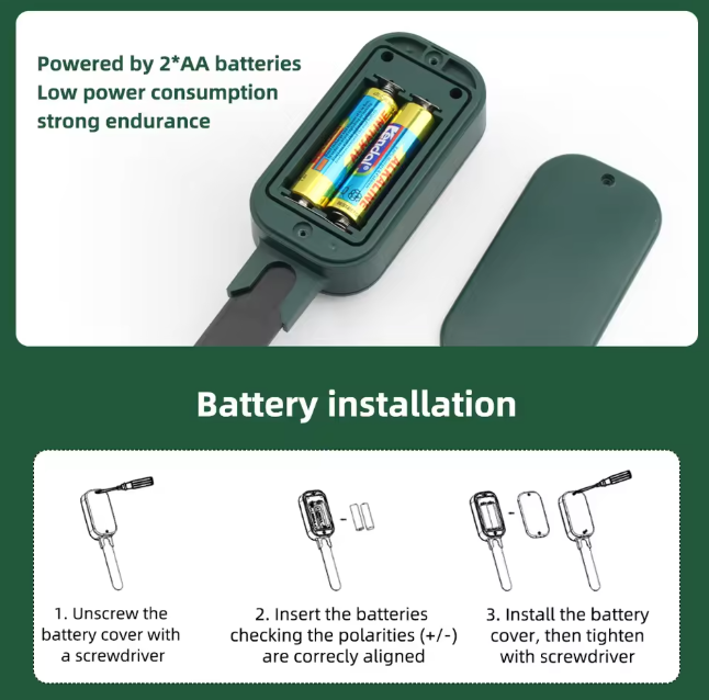 Cảm biến sử dụng 2 pin AA thông dụng, dễ thay thế, không cần nguồn điện ngoài, rất thuận tiện khi triển khai nhiều điểm đo trong vườn hoặc trang trại.Tương thích hệ sinh thái Tuya Smart