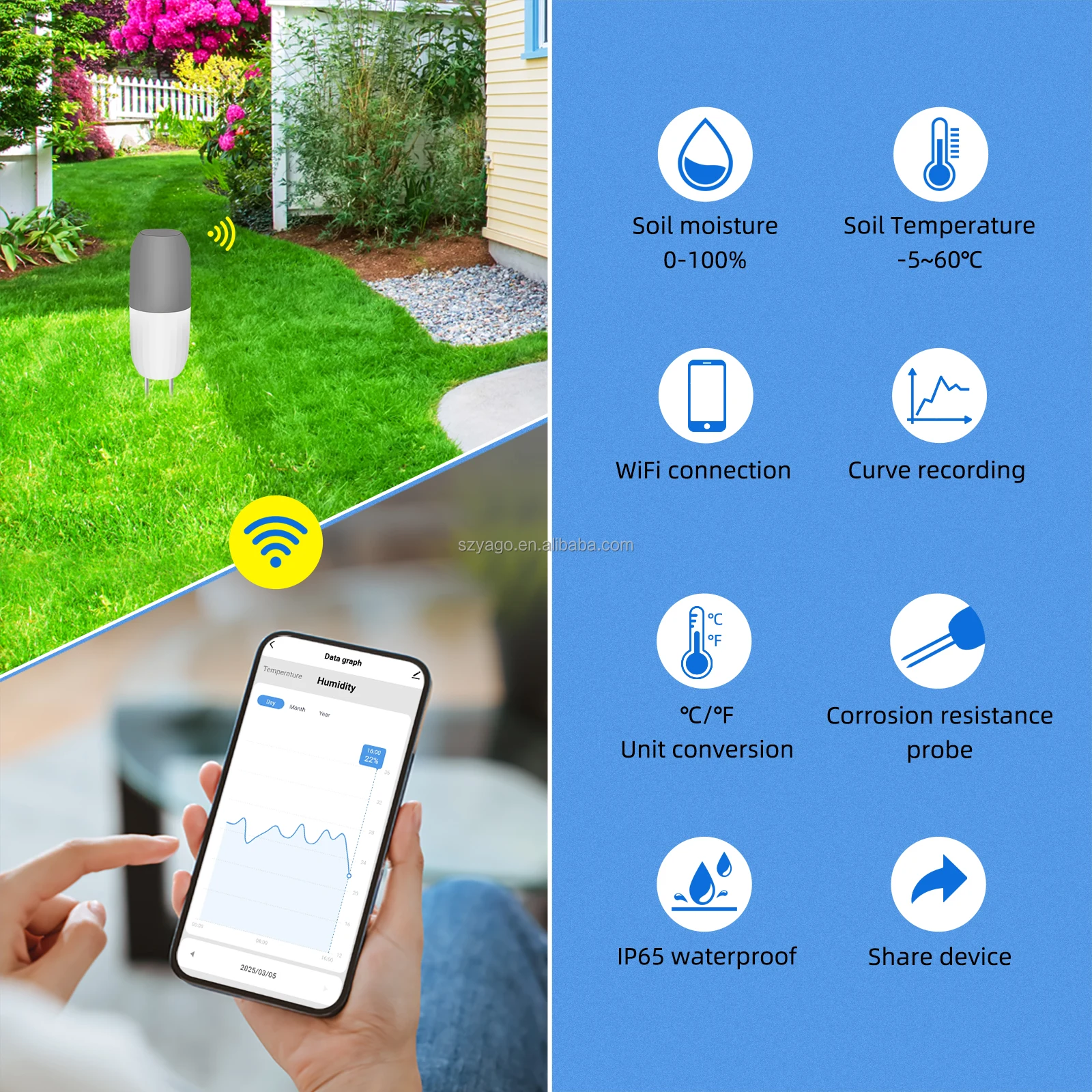 - Cảm biến độ ẩm & nhiệt độ đất WiFi Tuya THE01840W – Chống nước IP65, kết nối Smart Life