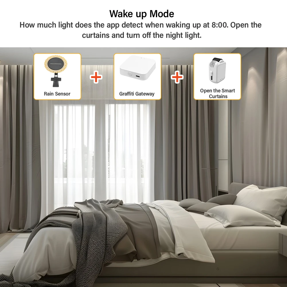 Dễ dàng kết nối với Tuya Zigbee Gateway và đồng bộ với các thiết bị khác như: công tắc tưới, đèn thông minh, rèm cửa tự động, hệ thống cảnh báo mưa.