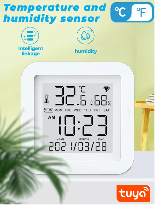 - Cảm biến nhiệt độ & độ ẩm thông minh Tuya WiFi TH06A – Hỗ trợ Alexa, Google Home