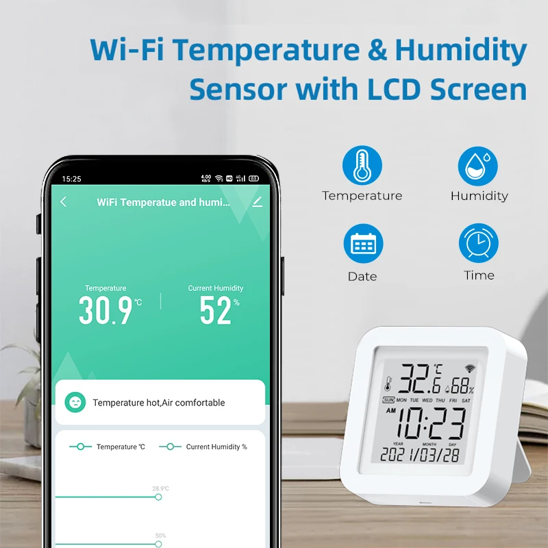 Trong thời đại công nghệ IoT phát triển mạnh mẽ, việc kiểm soát và theo dõi nhiệt độ, độ ẩm trong không gian sống đã trở nên đơn giản hơn bao giờ hết. Một môi trường quá khô hoặc quá ẩm không chỉ gây khó chịu mà còn ảnh hưởng trực tiếp đến sức khỏe, đồ nội thất và thiết bị điện tử. Với cảm biến nhiệt độ & độ ẩm thông minh Tuya WiFi TH06A-W, bạn có thể dễ dàng giám sát và điều chỉnh điều kiện môi trường trong nhà ngay trên điện thoại hoặc bằng giọng nói qua Alexa và Google Home.