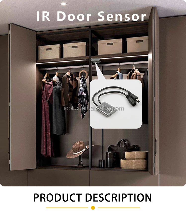 • Một cổng hồng ngoại cảm biến phản ứng với sự hiện diện của một trở ngại (cánh cửa đóng kín) đối diện với hoạt động phần tử. Bật khi mở và tắt khi đóng cửa. Đặc biệt hữu ích trong tủ quần áo và nhà bếp.