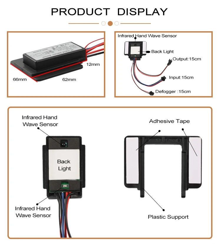 CácTay thông minh sóng chuyển đổiĐược sử dụng để bật/tắt12V LED đènVàGương Nóng (Chống sương mù Phim)Với công suất lên tới60W.