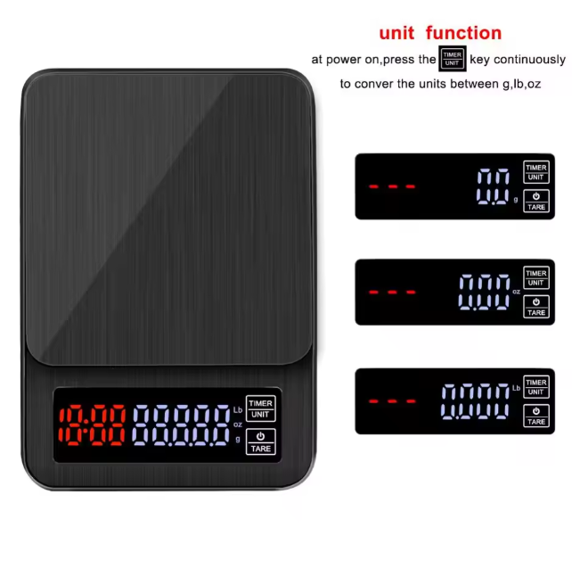 Cân pha cà phê điện tử TSC01756 – Cân nhỏ gọn 5kg/0.1g, hẹn giờ pha cà phê, LCD hiển thị rõ nét, pin AAA tiện dụng