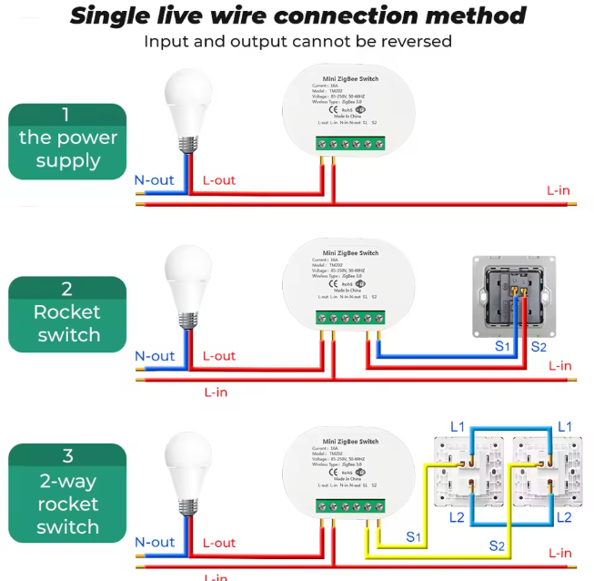 Nếu lắp ở chế độ không dây trung tính, công tắc chỉ hỗ trợ bóng đèn từ ≥5W, không cần tụ điện.