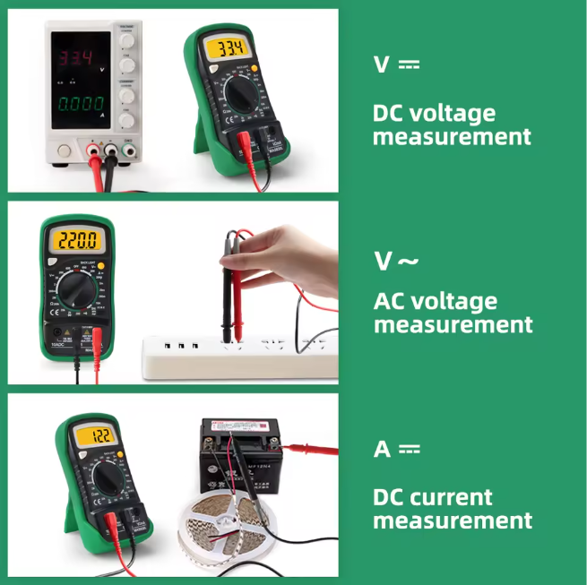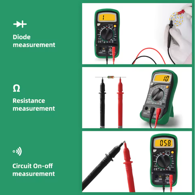 Dùng để đo điện áp, dòng điện hoặc điện trở trong tivi, máy tính, điện thoại, thiết bị dân dụng, UPS, inverter, nguồn tổ ong, bo mạch điều khiển.Giảng dạy và học tập kỹ thuật: