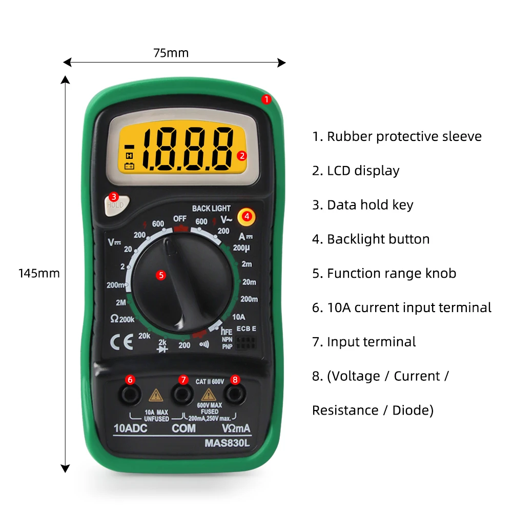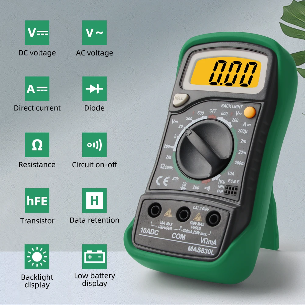 Đồng hồ vạn năng kỹ thuật số MAS830L là thiết bị lý tưởng cho mọi kỹ sư điện tử, thợ sửa chữa, sinh viên kỹ thuật hoặc người dùng gia đình.