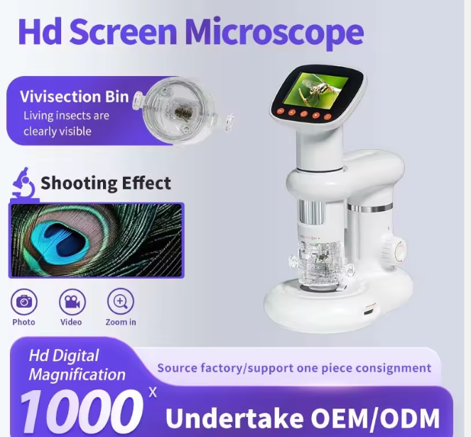 Kính hiển vi điện tử TTE01518 – Màn hình hiển thị HD, phóng đại 1000X, pin sạc 800mAh, quan sát côn trùng & vật mẫu ngoài trời