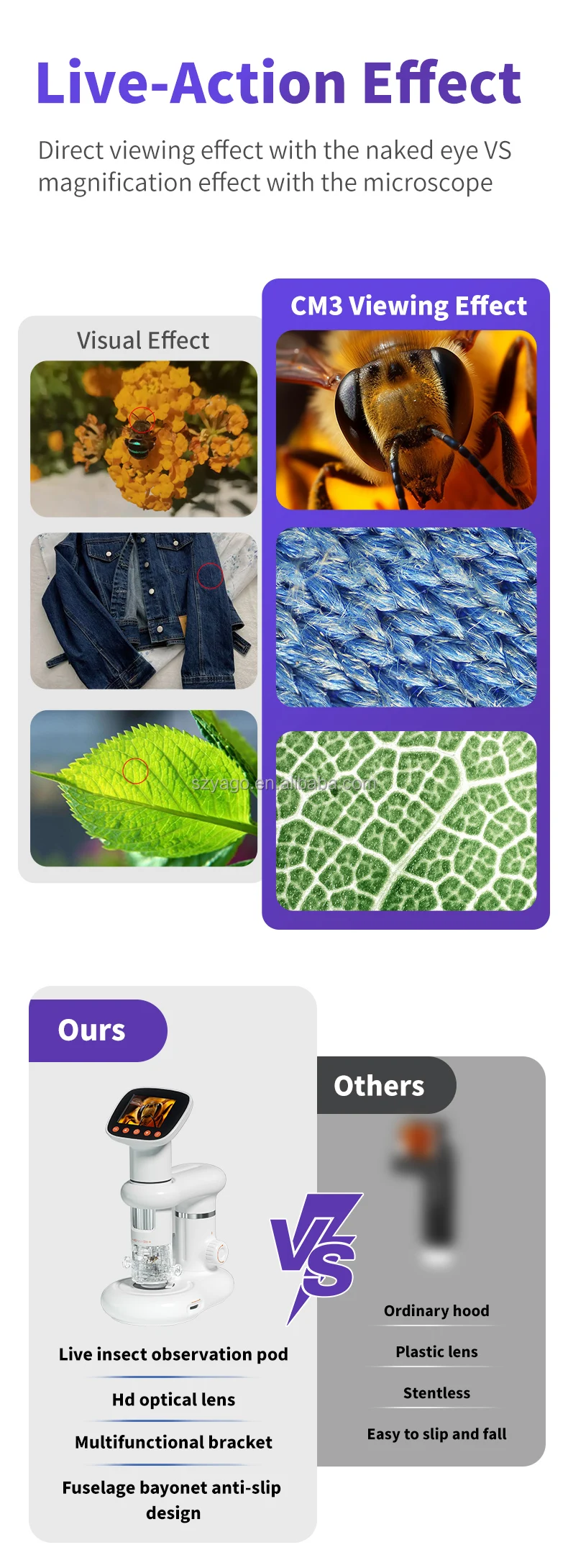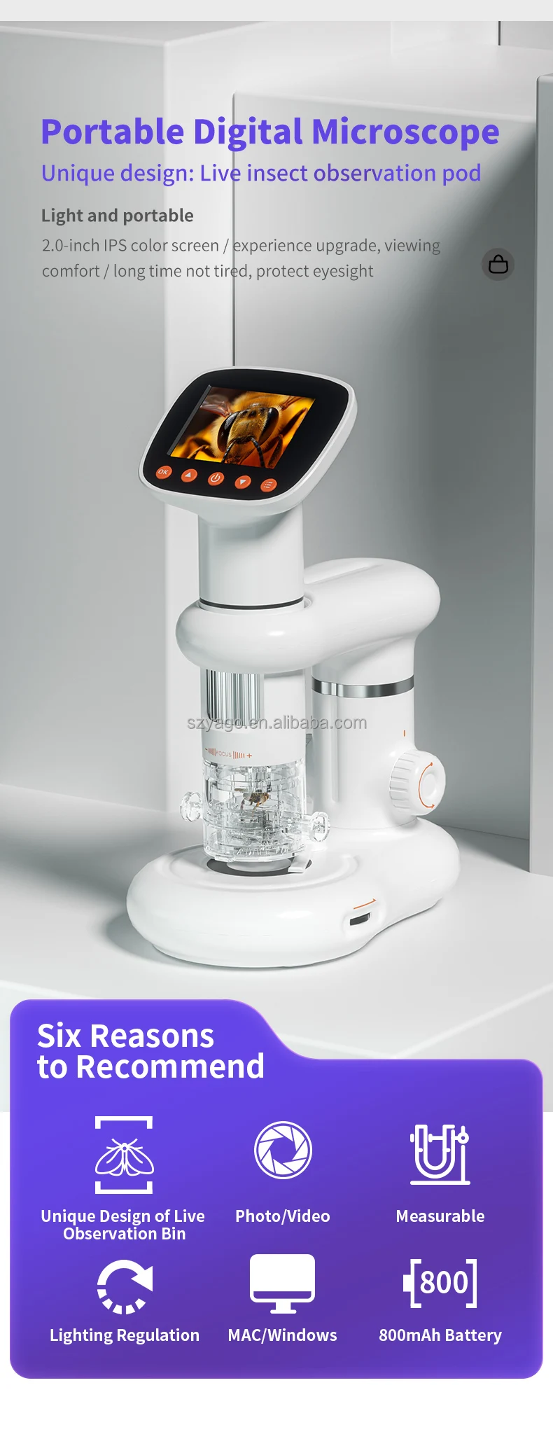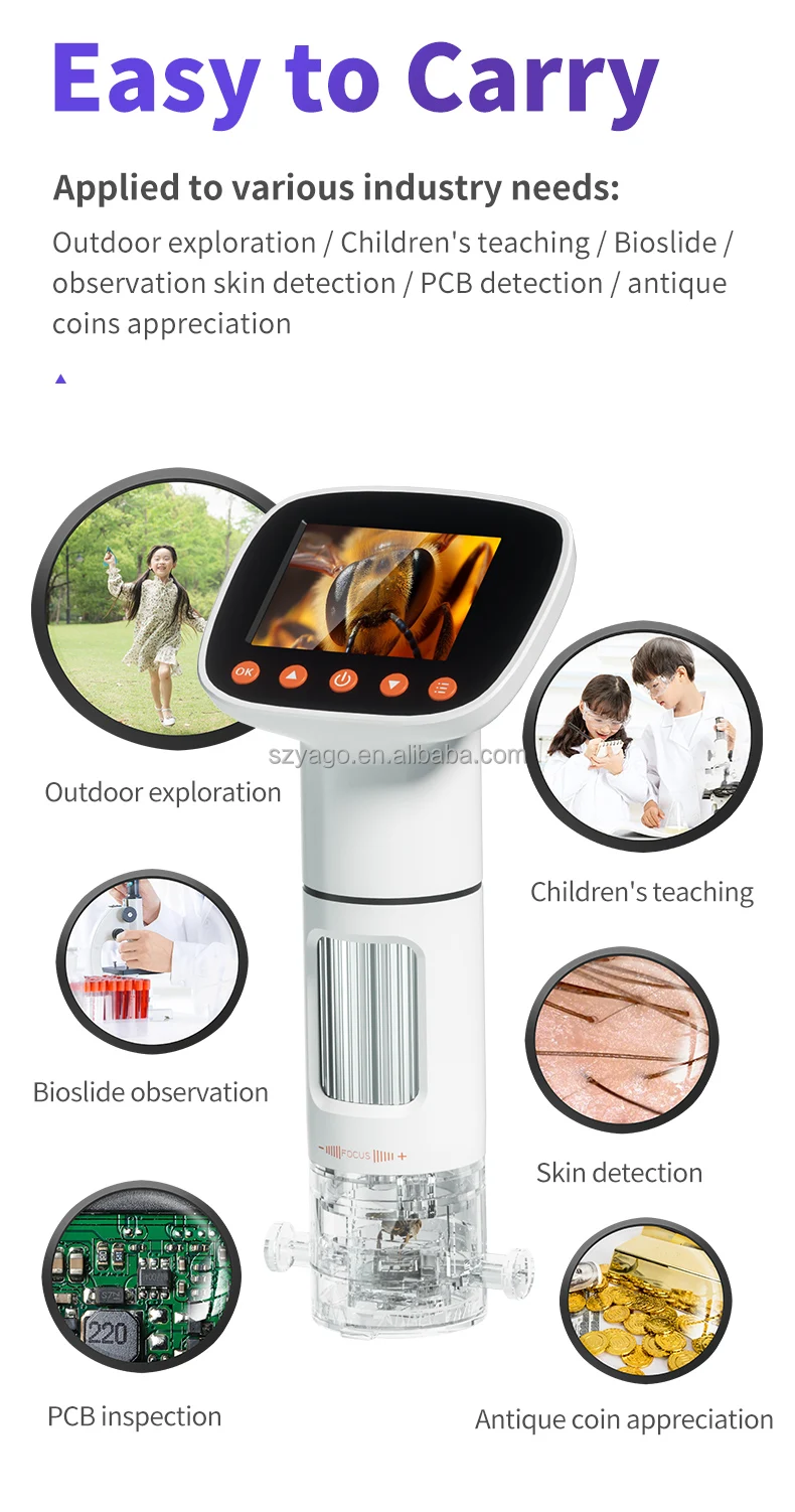Với màn hình HD sắc nét, độ phóng đại đến 1000X, pin sạc 800mAh và thiết kế di động, sản phẩm thích hợp cho giáo dục STEM, dã ngoại khoa học, kiểm tra vật liệu và nghiên cứu cá nhân.