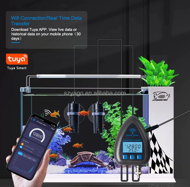 Đặc biệt, thiết bị hỗ trợ kết nối WiFi Tuya Smart / Smart Life, cho phép người dùng theo dõi dữ liệu thời gian thực qua điện thoại hoặc máy tính bảng, rất lý tưởng cho phòng thí nghiệm, bể cá, nuôi trồng thủy sản và hệ thống lọc nước công nghiệp.