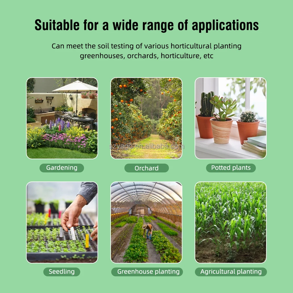 Thiết bị được trang bị màn hình LCD lớn dễ đọc, tự động tắt khi không sử dụng, và phù hợp cho vườn rau, cây ăn trái, bonsai, trang trại và phòng thí nghiệm nông nghiệp.