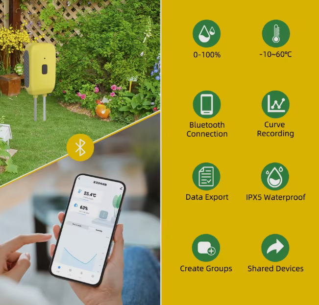 - Máy Đo Độ Ẩm & Nhiệt Độ Đất Bluetooth Chống Nước YIERYI SGS08 – Theo Dõi Qua Ứng Dụng, Lưu Dữ Liệu Tự Động