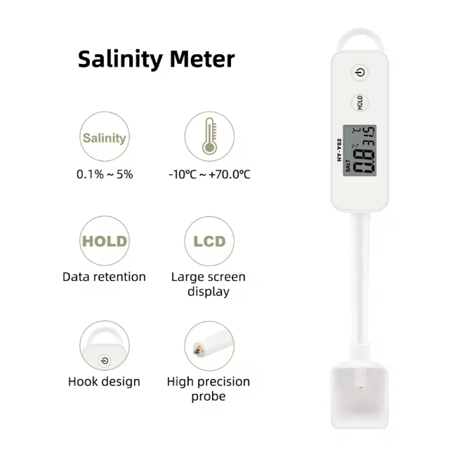 YIERYI HY-Y02 là máy đo độ mặn kỹ thuật số tiện lợi và dễ sử dụng, phù hợp cho gia đình, nhà hàng, trại nuôi thủy sản và phòng thí nghiệm nhỏ.