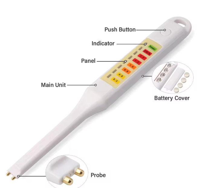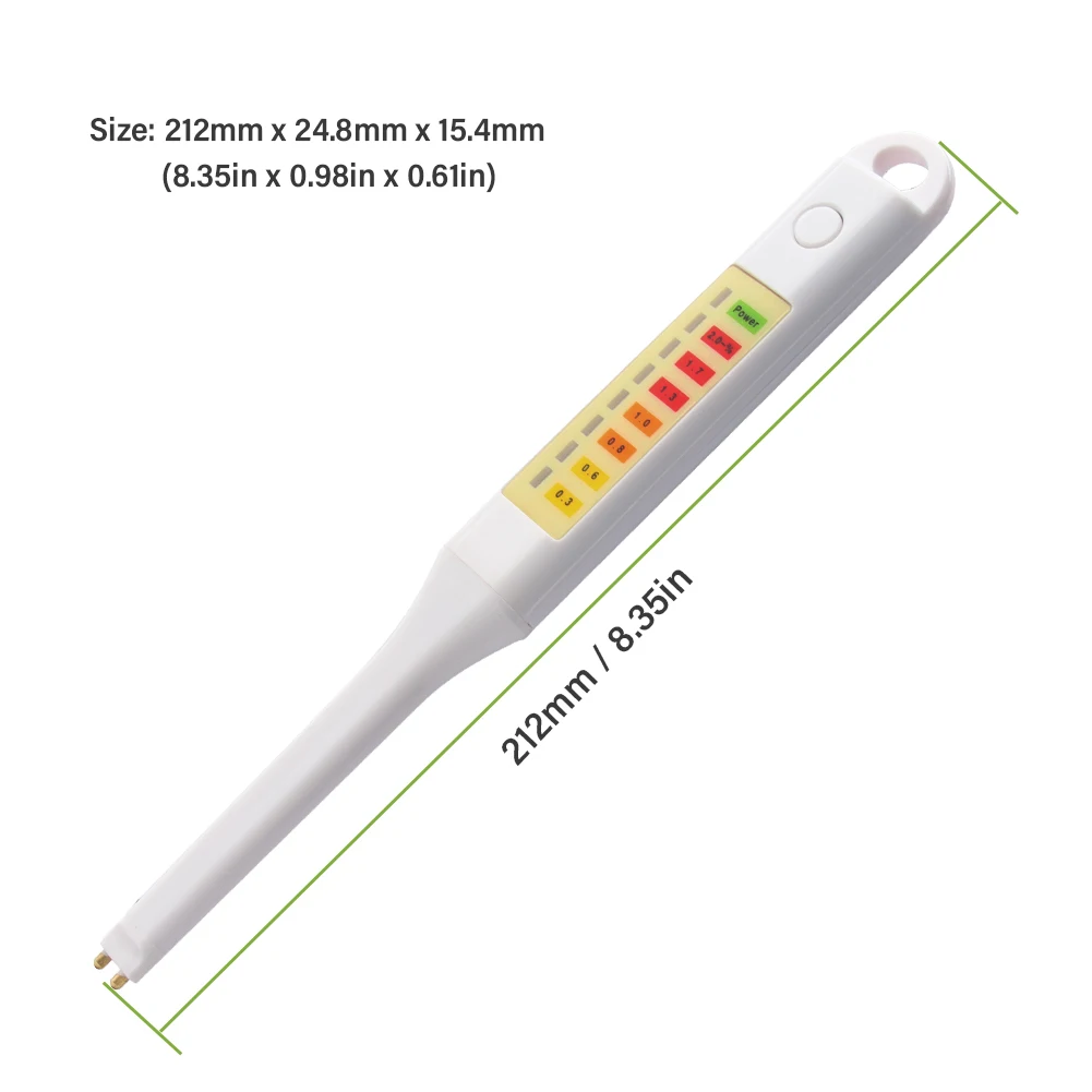 Thân máy dài, kiểu dáng dạng bút giúp dễ thao tác, không chiếm diện tích trong bếp hoặc túi dụng cụ kiểm tra thực phẩm.