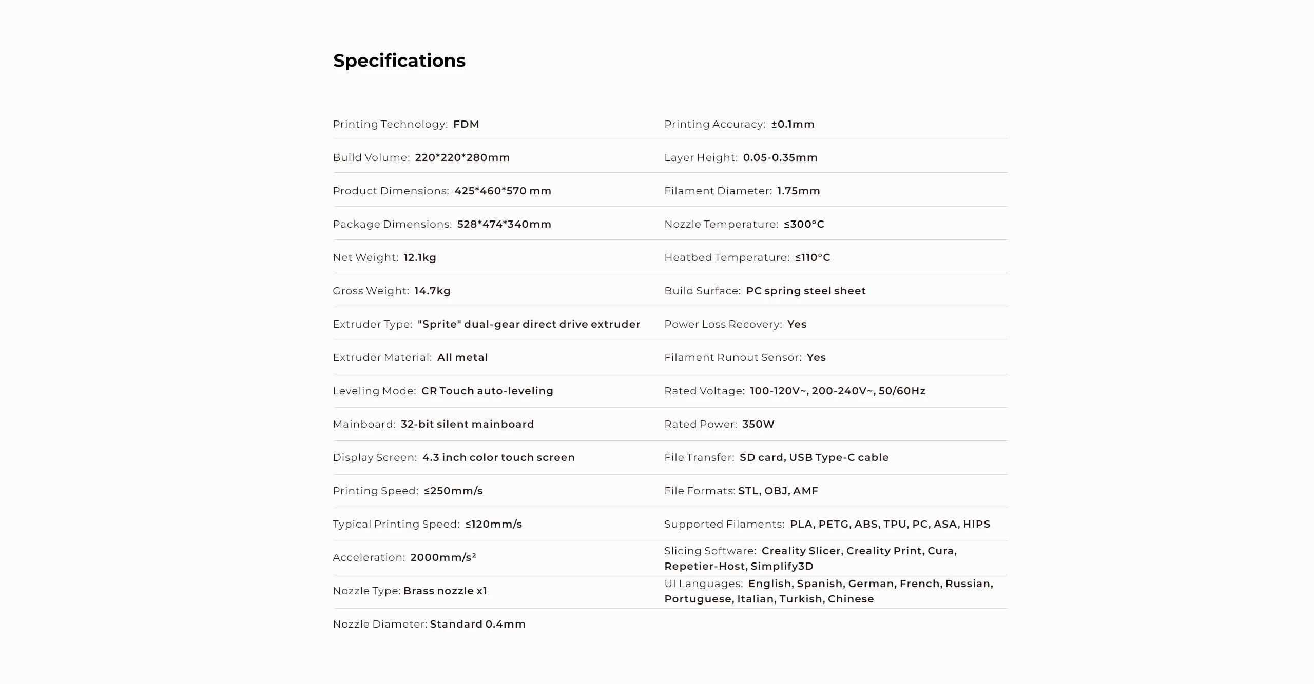 Standard 0.4mm (can be changed to 0.3 / 0.2mm)