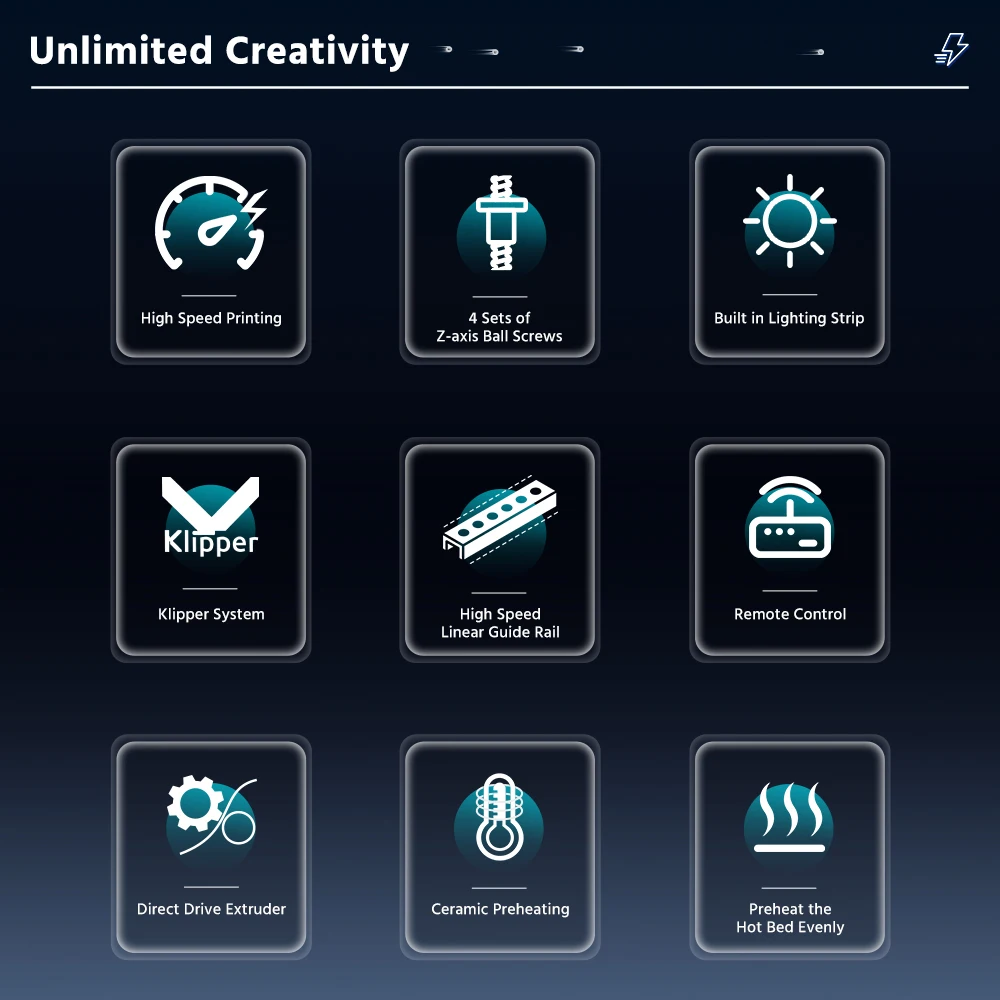 --- Với cấu trúc cấp công nghiệp COREXY, quá trình in ổn định hơn, nhanh hơn và có độ chính xác cao hơn;