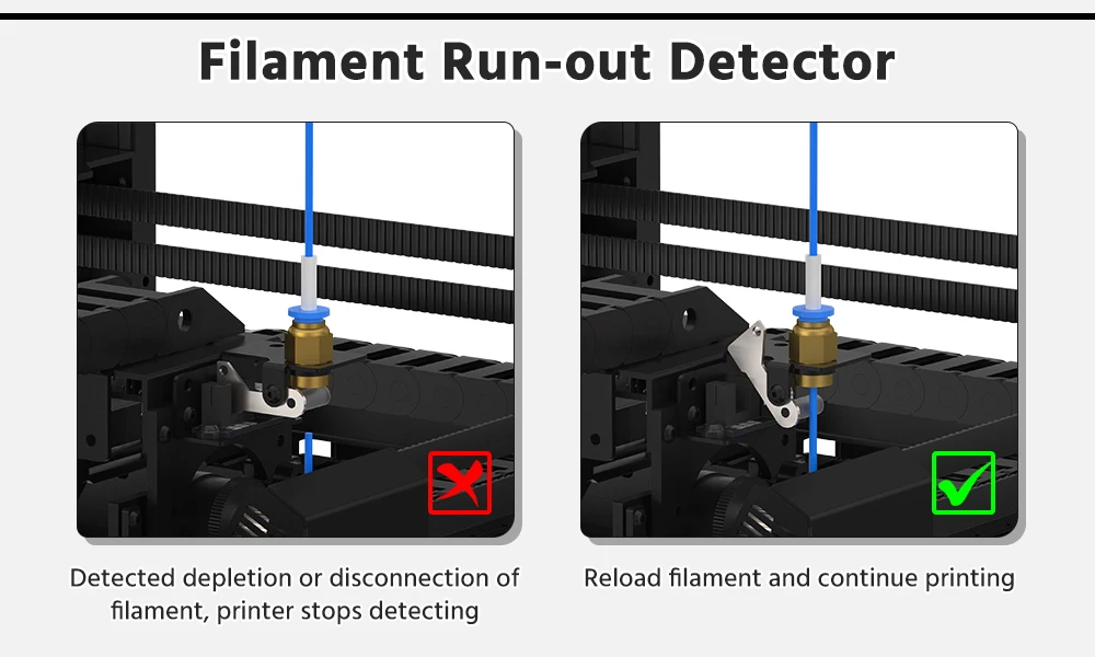 Cảm biến hết nhựa (filament run-out) – tự dừng khi sắp hết vật liệu.