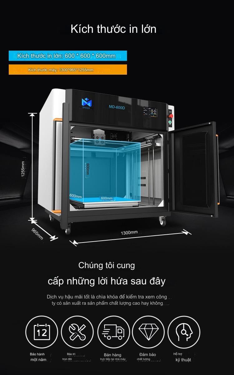 - Máy IN 3D MINGDA MD-600D| Kích Thước In 600x600x600 mm, Công Nghệ FDM