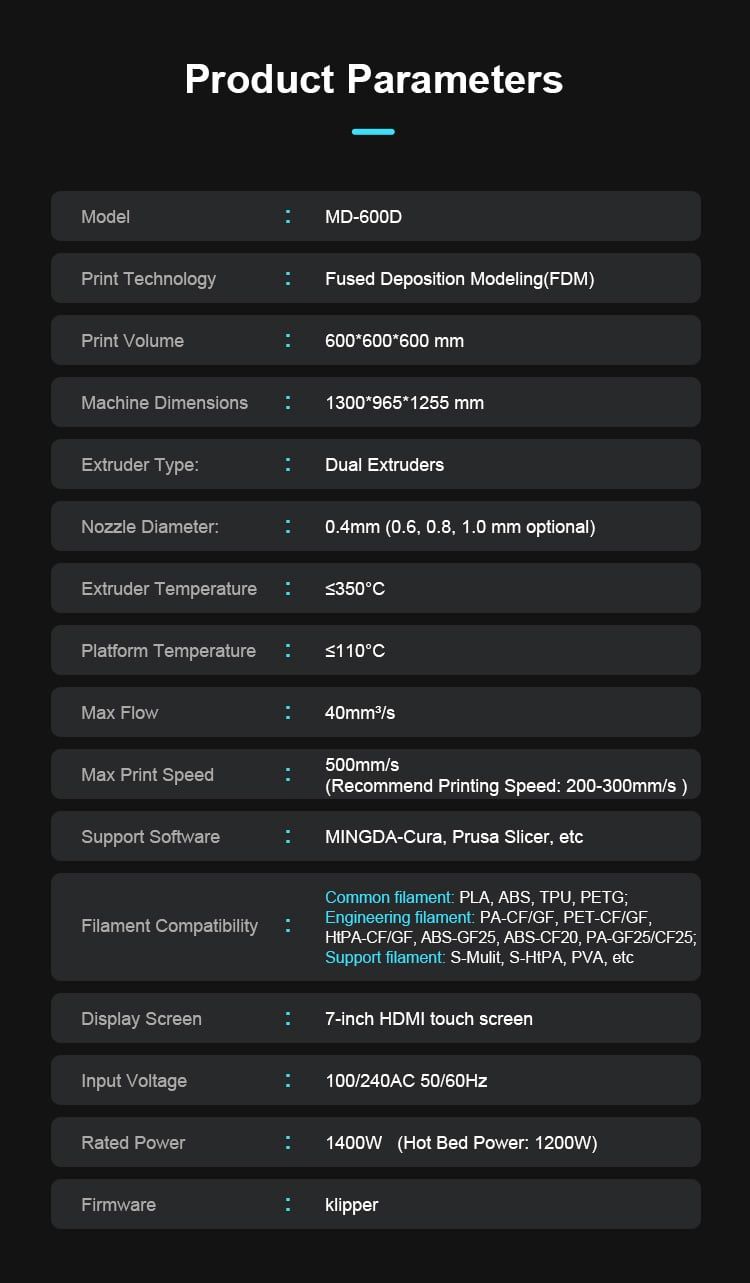 Máy IN 3D MINGDA MD-600D| Kích Thước In 600x600x600 mm, Công Nghệ FDM