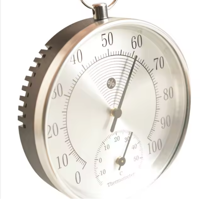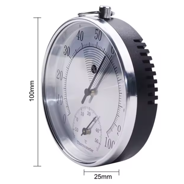 Mặt đồng hồ hiển thị kép: Hai kim riêng biệt – một chỉ nhiệt độ, một chỉ độ ẩm.
