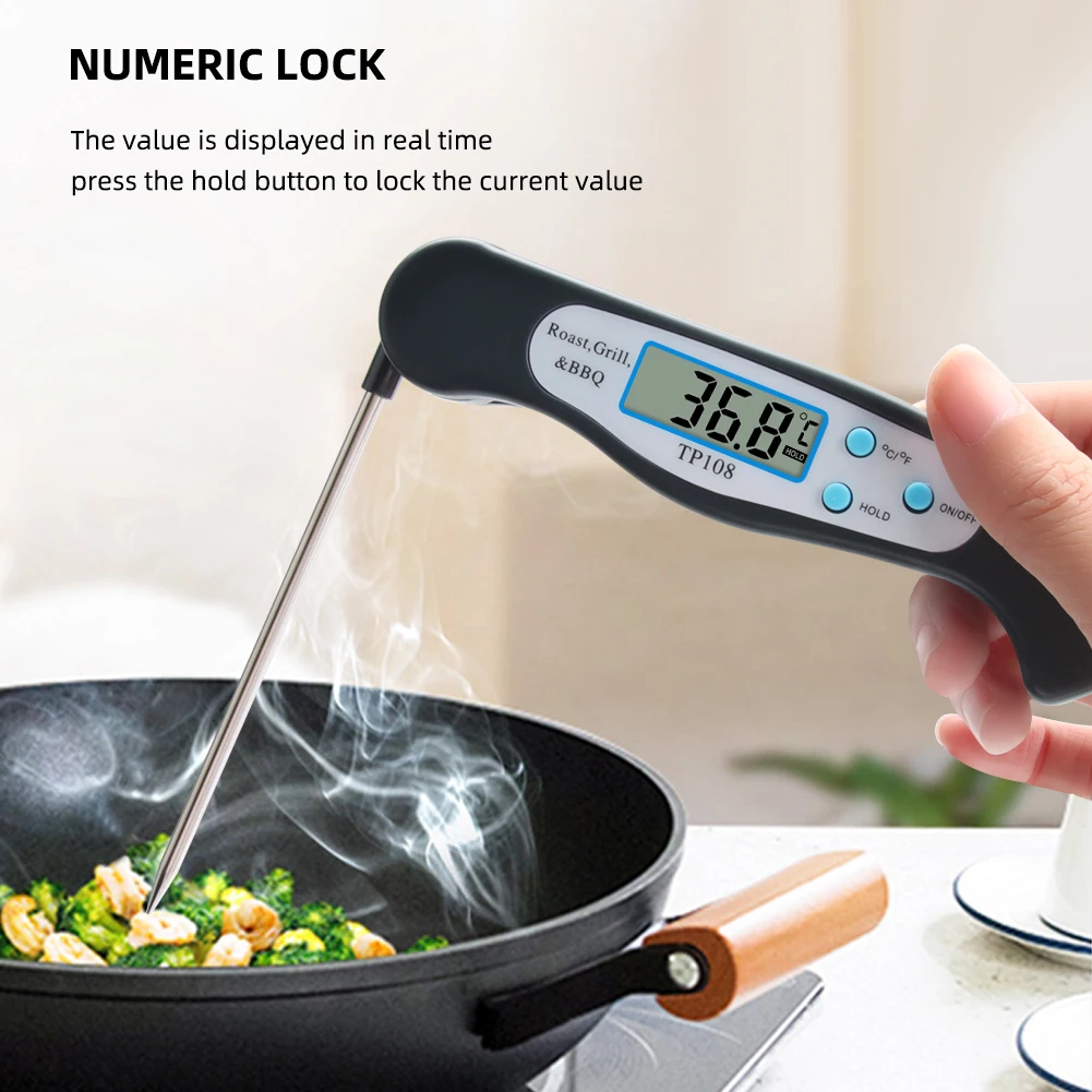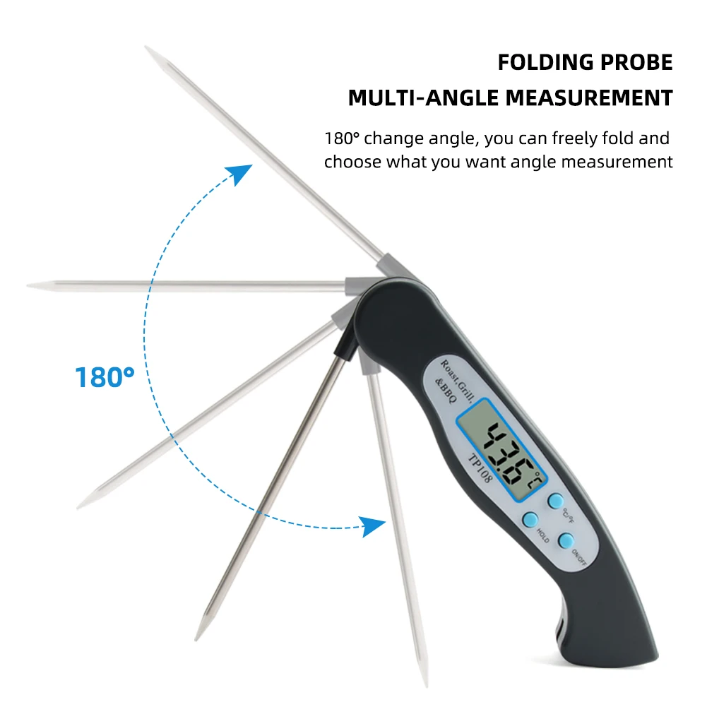 YIERYI TP108 là nhiệt kế thực phẩm kỹ thuật số dạng gập (Folding Food Thermometer) với khả năng đo nhanh và chính xác chỉ trong 3–5 giây, giúp người dùng dễ dàng kiểm tra nhiệt độ thịt, cá, bánh, sữa, dầu hoặc nước.