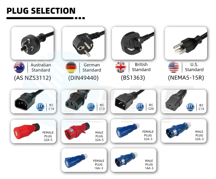 Ổ cắm tiêu chuẩn | IEC320 C13 C19 hoặc tùy chọn | ||