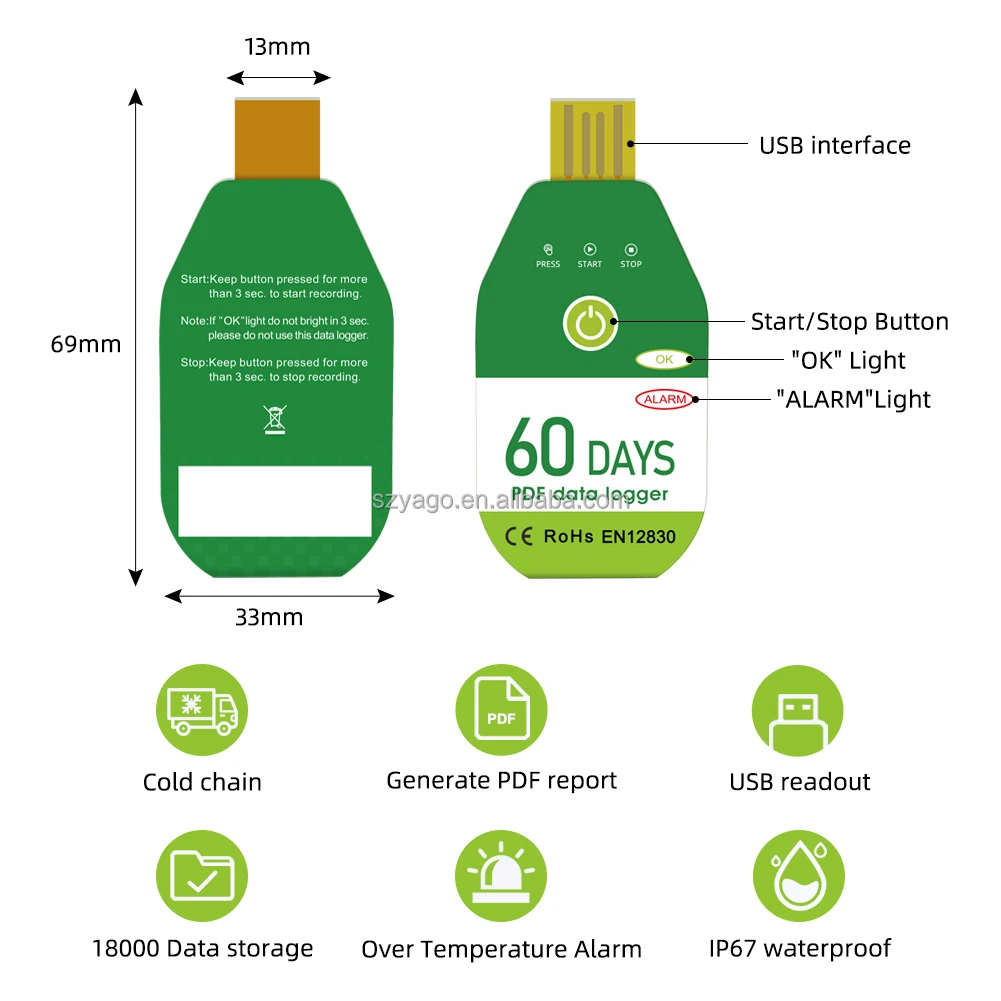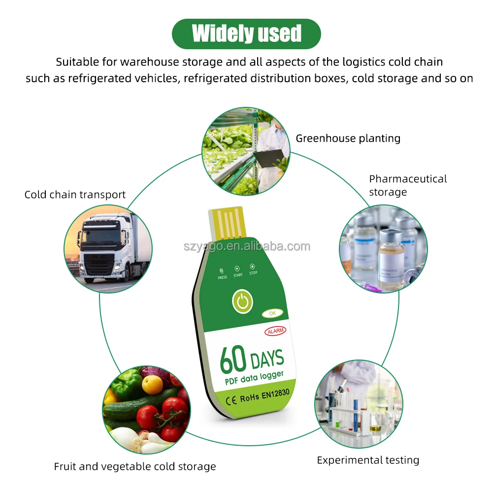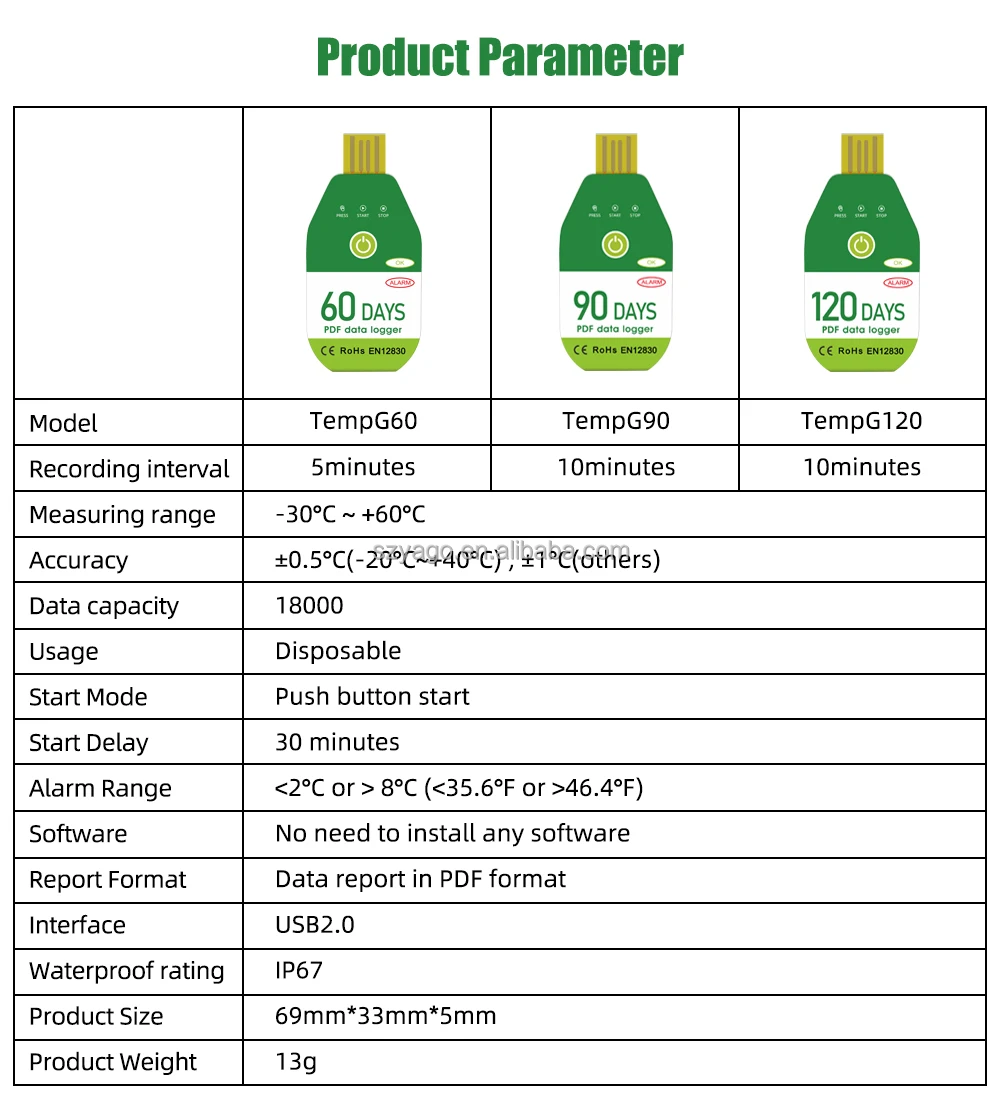 YIERYI TempG60/TempG90/TempG120 là thiết bị ghi nhiệt độ dùng một lần tiện lợi, hoạt động ổn định trong 60–120 ngày, chống nước IP67, dung lượng 18.000 dữ liệu, và tự động tạo báo cáo PDF.